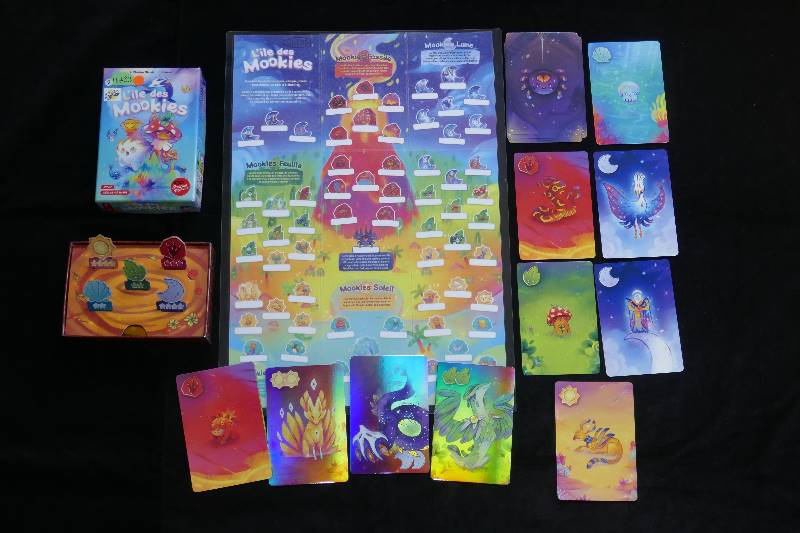 | Contenu | 1 règle de jeu original 36 cartes Mookies 5 tuiles Trophée 1 feutre effaçable noir 1 chiffon noir 1 Affiche des Mookies |