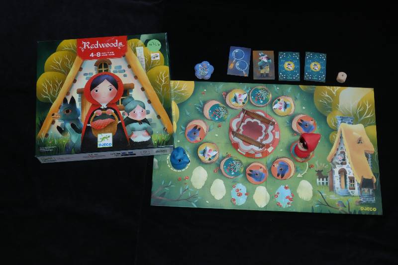 | Contenu | 1 règle de jeu original 1 plateau de jeu 1 panier 4 tuiles Chasseur 11 tuiles rondes 5 tuiles Fleurs 1 figurine Loup 1 figurine Chaperon Rouge 1 dé spécial |